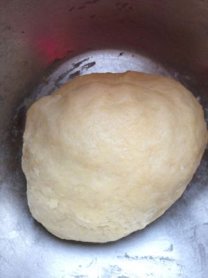 蛋液留一点儿烤的时候刷在表面上色用,剩的倒在盆中。将面粉150克克,和室温软化的黄油40克、糖15克混合。然后逐次少量加入热水,用筷子拌匀后揉成光滑的面团,盖保鲜膜静置饧面二十分钟