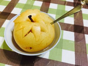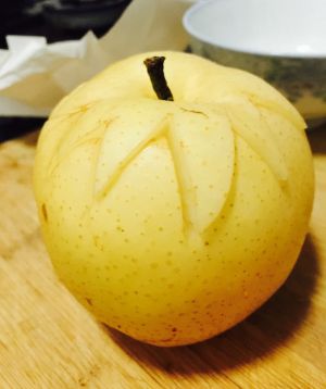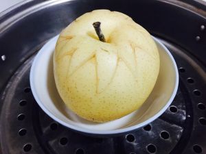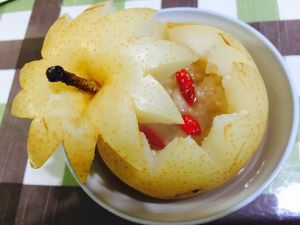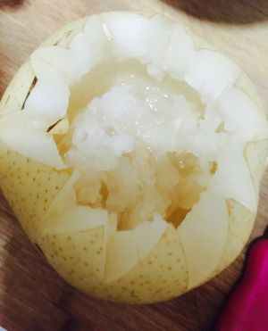 把川贝拌入 梨的果泥 加入冰糖 蜂蜜 枸杞