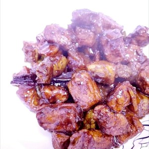 锅内放油 加糖 小火 等糖慢慢融化放肉 使每块肉都沾糖炒两三分钟