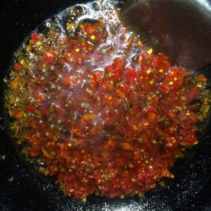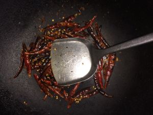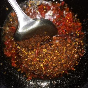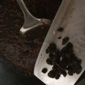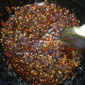 香料捞出不要,放郫县豆瓣翻炒几分钟。