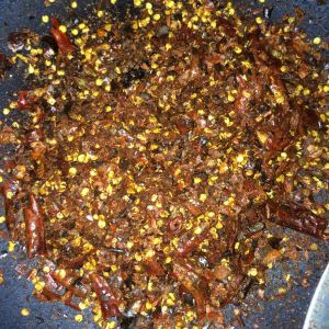 装入口袋中,封好口,用力搓口袋,搓成辣椒面。