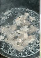 砂锅中放足量冷水,同时把龙骨放入,煮开后转小火(如有浮沫要撇干净)。