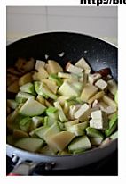 放入土豆片、豆腐块和西葫芦片,翻炒一下。