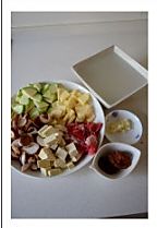 准备原料:香菇洗净切成薄片,小型土豆去皮洗净切成厚片,豆腐切小块,西葫芦切厚片,肥牛片解冻,蒜去皮切成碎末。