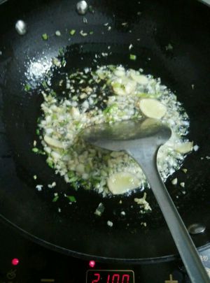 油热锅后,把葱姜蒜倒进去