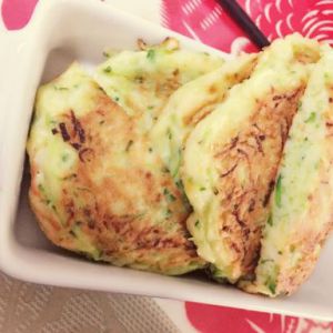 依次放入,如果图省事儿,把萝卜丝全拌进去也行,但是这样容易让面糊变稀!所以摊饼的动作一定要快!另外面糊和萝卜丝的分量也要掌握好!