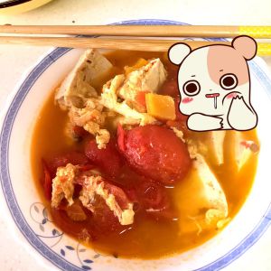 闷的差不多了就可以加水了,水烧开了就倒入蛋液,然后就可以盖上锅盖咕噜咕噜了。这时候记得火稍微调小一些。