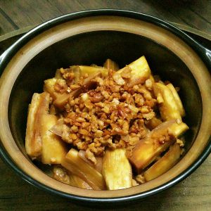 炒均匀后关火。将茄子倒入砂锅里,然后再用点生抽调半碗水,淋在茄子上。开大火煮开后转小火,直到煮熟。如果不想这么麻烦。直接在炒锅里煮也是可以的哈,比较随意的。怎样方便怎样来!!