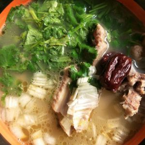 熬好关火,盛入碗中,放入香菜,葱花,香油。