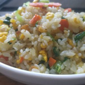 将需要的食材备好:剩米饭,胡萝卜切丁,鸡蛋打散,玉米粒,鸡毛菜切丁。
