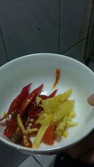 泡红椒,野山椒,姜切切丝备用