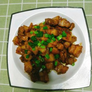 最后装盘,上面撒些葱花,这道美味的五花肉就做好了