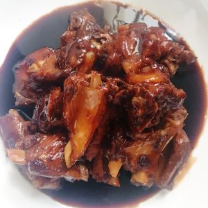 一勺料酒,两勺酱油,三勺糖,四勺醋。调好料汁