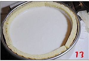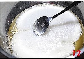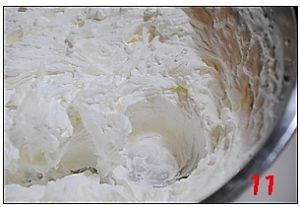 再将打发的淡奶油,分几次加入的荔枝液中,拌成慕斯糊。