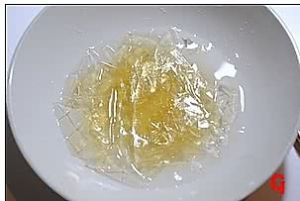 吉利丁先用少量罐头汤泡胀,再隔热水融化。