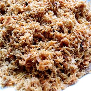 然后将碎肉倒入面包机,将调好的酒油糖盐倒入,将面包机调整肉松模式,就可以了,配图是没有调料的肉松