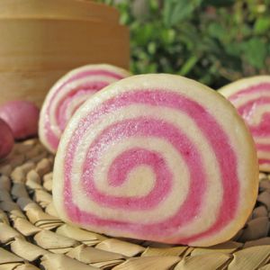 同样擀紫薯面皮,擀到和白面皮一样大。