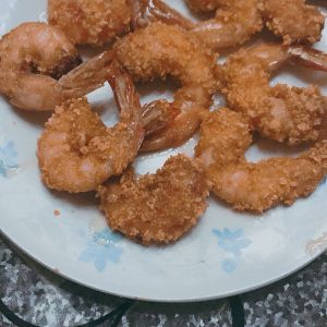 然后放到面包糠里粘满就可以了,记得把尾巴留下好看