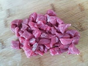 倒入适量油,油热后倒入葱姜蒜,继而放入牛肉,适当翻炒,