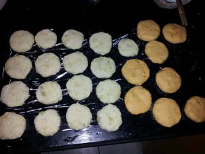 之前刚有提到土豆饼,顺便说一下。就是土豆蒸熟后压成泥,加入一些盐,和面粉和成面团。捏成剂子,揉圆,压扁,上锅煎一下即可。吃的时候配番茄酱更好吃哦!
