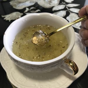 使用燕窝炖锅开始炖煮。炖至25分钟以后,加入适量桂花和冰糖。还可以放一些枸杞。