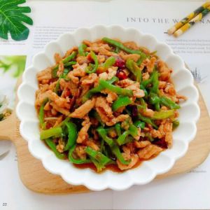 倒入青椒丝翻炒均匀,汤汁浓稠关火盛出。