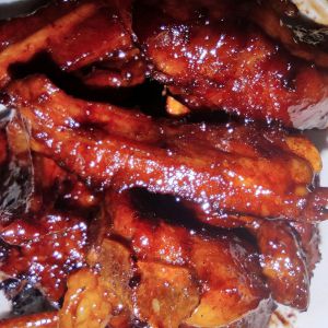 放油六成热转小火加入糖耐心熬,熬到糖化了冒泡了稍微变黄了,放入排骨翻炒均匀。