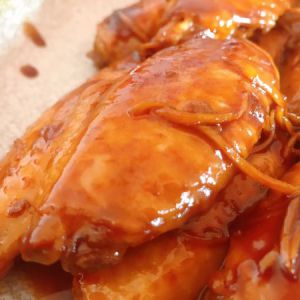 加入姜丝,可乐,生抽,老抽,大火烧开后转中小火十五分钟,浇上一勺蜂蜜,然后大火收汁即可