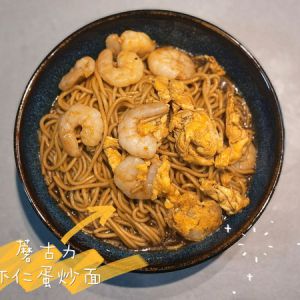 锅热倒油,放入虾仁、鸡蛋液,进行翻炒