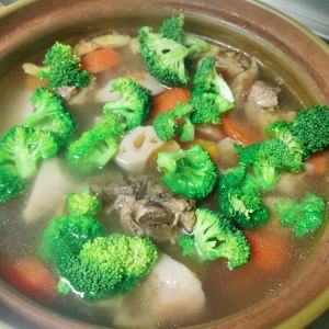 ④ 再放入西蓝花,小火继续煮20分钟;关火前,撒入适量盐调味即可。