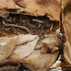 放到锡纸上,加入烤箱445华氏度,先烤半个小时。然后拿出来清理一下烤出来的水,继续350华氏度,根据鸡的大小,烤1-2个小时