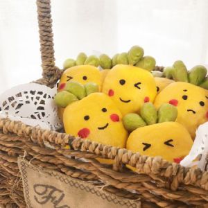 在南瓜面团的顶部略微按压一下,刷一点水,把三个绿色的叶子粘在顶部,压实;