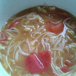 等西红柿汁熬的差不多了就把面条放进去,等面条快好了就把鸡蛋倒在面条里一起煮沸,锅里可以适当放些盐
