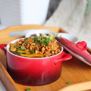 加一勺生抽再撒上一些小香葱,肉末豆腐蒸鸡蛋就做好了。