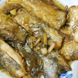 锅中留底油倒入葱姜蒜炒出香味,放入炸好的带鱼,加入生抽,醋,料酒,白糖,翻炒均匀,注意不要碎了。