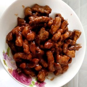 少许油,放番茄酱,放入调好的料汁,最后导入里脊肉,翻炒,关火出货!