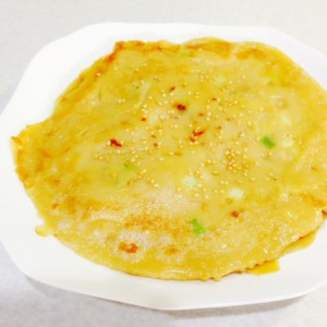 用两碗面粉,两个鸡蛋,两条葱,两小碗水煎了四个葱油瓶。
