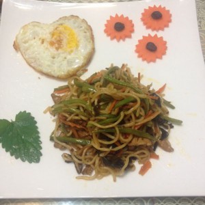 小火炒5分钟,面条有点催催的时候关火出锅