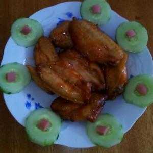 最后就是将烤翅取出装盘,可以根据自己的喜爱弄点装饰噢