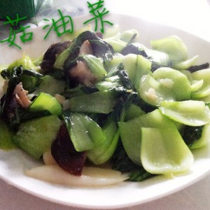 锅中放油,放入葱蒜,把油菜倒入快速翻炒加入香菇,放盐翻炒几下加入味精起锅,时间不宜过长。
