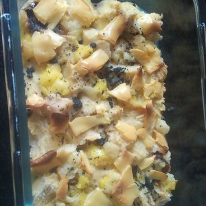 5分钟后 把装好的馒头布丁轻轻放入烤盘里 然后烤15分钟