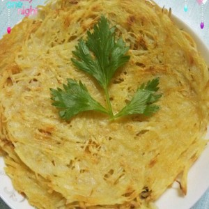 平底锅放少许油,放土豆丝,用铲子铺平锅底,不要翻动,小火慢慢煎,直到可以晃动,翻面煎至两面金黄,撒少许盐或黑胡椒即可。