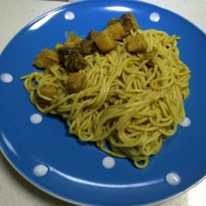 洗锅,加水烧开,下面,烧开后添冷水再次烧开,捞出面沥干水,咖喱土豆牛肉加入捞出的面中,均匀拌开。搞定。