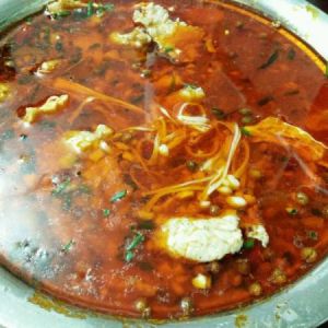 锅内加少许油加葱段生姜片,小火爆香,盛出来留作最后浇用,留点底油,加郫县豆瓣酱炒出红油加水煮沸加盐调味