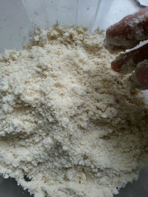 把黄油和面粉混合并用手抓捏成细沙状,让面粉均匀裹住黄油