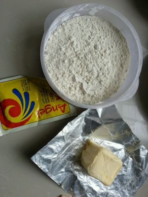 然后加入牛奶,盐和酵母揉成较光滑面团盖保鲜膜醒发至面团一倍大,时间约45分钟左右。