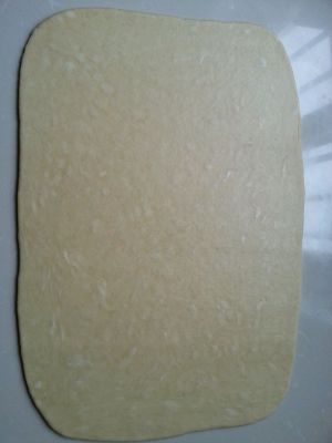 将发好的面团擀成0.5cm厚的面片。