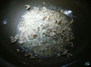 锅里热油,放入肉末煸炒一会,然后放入酱油继续煸炒,熟了装入碗中备用。