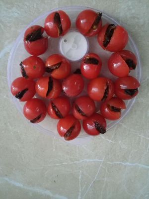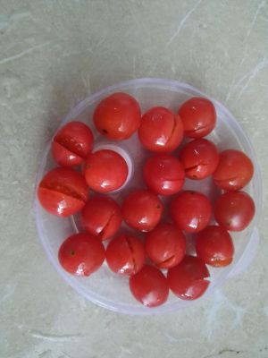 2.番茄洗净在一头切小口。