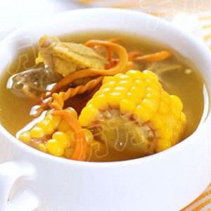 转中小火炖1.5小时,见汤汁明显变黄,加入玉米和枸杞,继续炖半个小时。(这时汤已是金黄色,非常漂亮,而且味道非常鲜美)出锅前5分钟加盐即可。